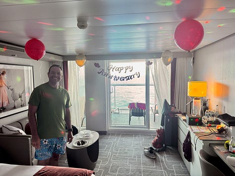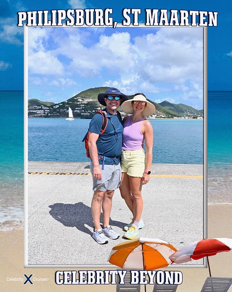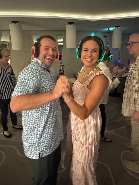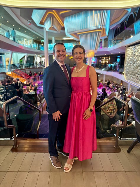 I cried on the way to the airport, but once I passed through security and made it to our gate, excitement replaced all my nerves. Friends, I did not think I was a cruise person. But you know what? I’m a cruise person. 10 out of 10 times I will recommend the Celebrity Beyond (booked based on a recommendation from a good friend, who I’m calling my Cruise Sherpa). I make one thousand decisions each day for everyone in our family, and on the cruise my biggest decisions are which swimsuit to wear and which entree to order. I spend mental energy on my books (I read Dear Edward, Hello Stranger, Lady Tan’s Circle of Women, and My Friends) instead of on Instacart orders, “easy” vacation meals, and figuring out transportation for excursions. I am responsible for no one, and almost immediately I feel like I’m 27 years old again.